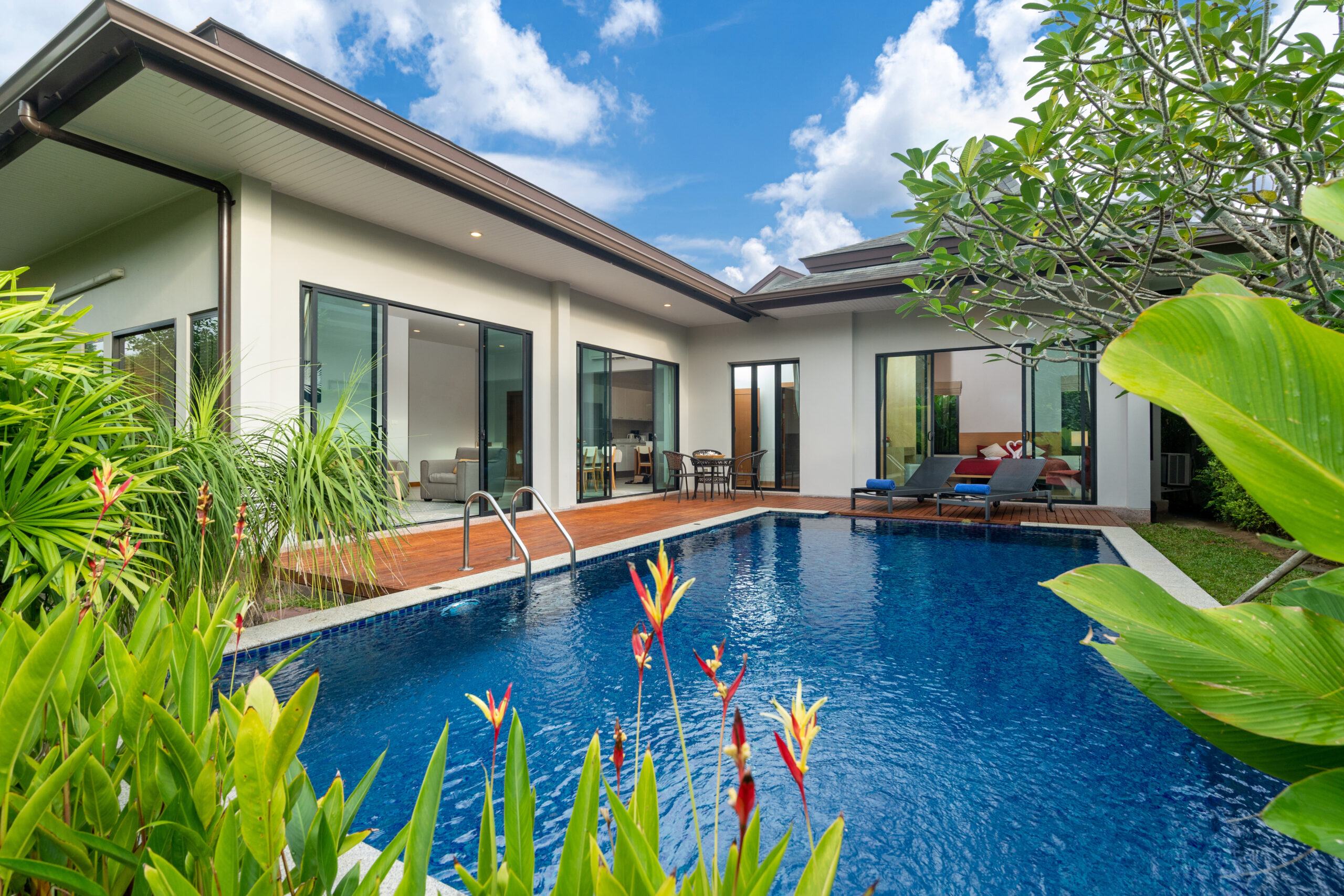 Deck construction integrated seamlessly with the pool coping, utilizing composite decking material selected for its resistance to chlorine exposure, saltwater conditions, and intense UV radiation common to the coastal environment. The substructure features marine-grade fasteners and hardware to prevent corrosion from ocean air exposure.