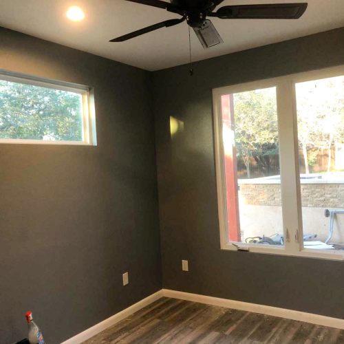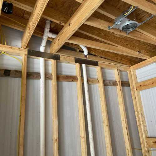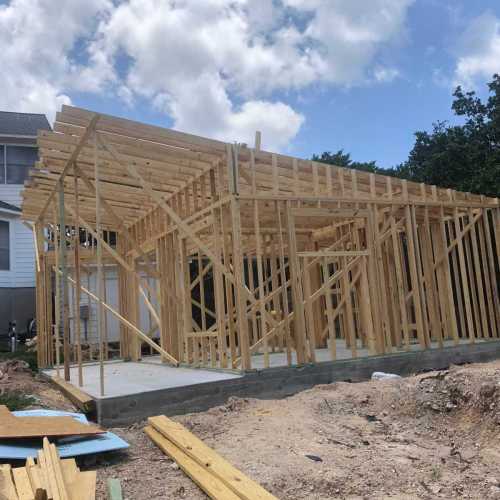 The construction process tells its own story—that framing photo shows the skeleton of what would become a fully functional living space. We built this on a proper foundation with all the infrastructure of a real home: separate electrical panel, its own HVAC system, full plumbing rough-in. No shortcuts.